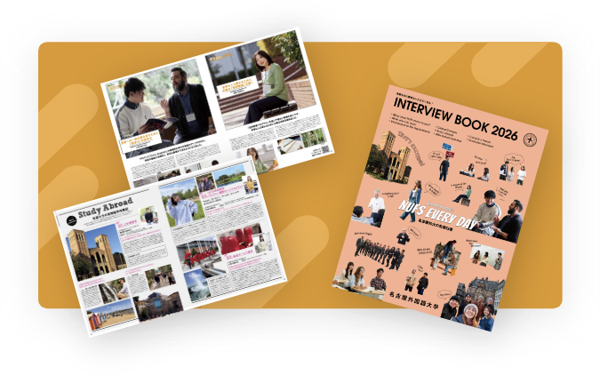 留学・学び・就職に関する情報を掲載。名古屋外大の魅力が詰まった一冊です。