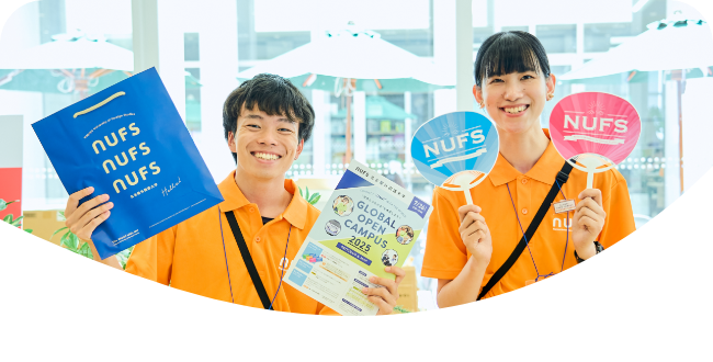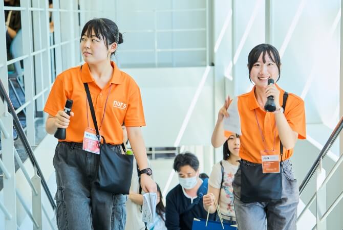 キャンパス内の施設や設備を在学生がご案内します。名古屋外大の学ぶ環境や特長を直に見ることができます。