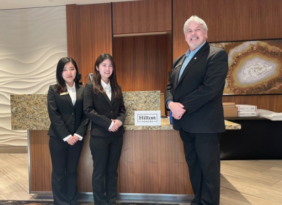 英語を使った仕事に就きたいと考え、入学後はTOEFLのスコアアップを目標に地道に努力を重ねました。「エアライン・ホスピタリティ科目」がきっかけでホテル業界に興味を持ち、海外のホテルでのインターンシップに挑戦。文化の違いにより、イギリス人の上司との関わり方に難しさを感じましたが、相手を知る努力や自分からコミュニケーションをとりにいくことの大切さを学びました。