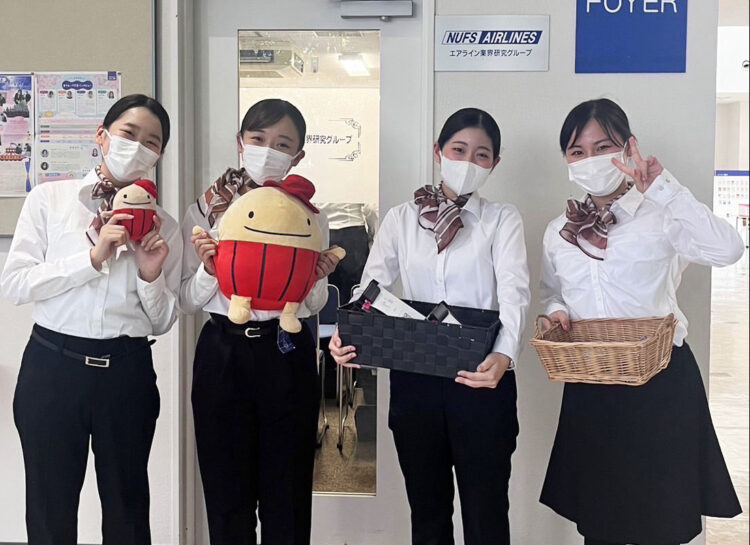 1年次に合同祭(大学祭)の準備に参加し、客室乗務員やグランドスタッフの業務内容への理解を深めてから、興味のあるグループを選択します。
