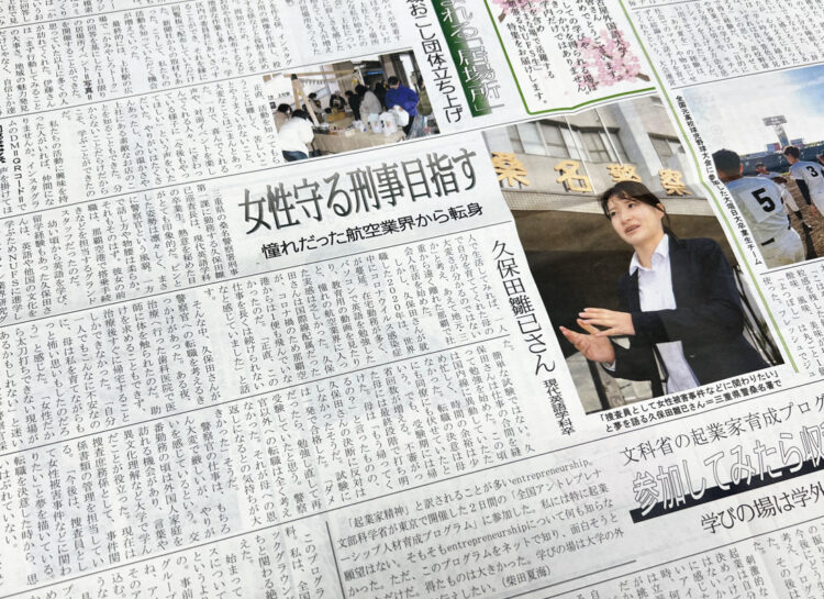 そのなかで私は三重県警桑名署に勤務する名古屋外大の卒業生にお話を伺いました。警官になる前は沖縄で客室乗務員をされていたという全く異なる職種への転職理由に焦点を当て、顧問の教員にサポートしていただきながら取材をし、記事にまとめることができました。