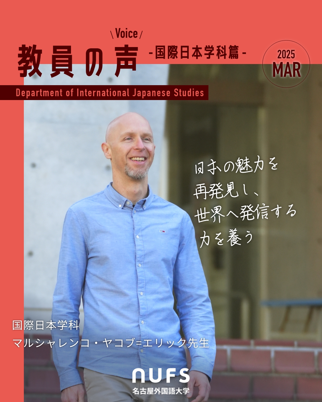 ここ数年、日本へ訪れる「外国人」は増加し、多様性への理解も増しています。多様化する日本をしっかりと理解し、明るい未来に繋げることが私たちの役割や使命だと思います。名古屋外大での学びを通して一緒に日本の魅力を“再”発見し、世界へと発信していきましょう。