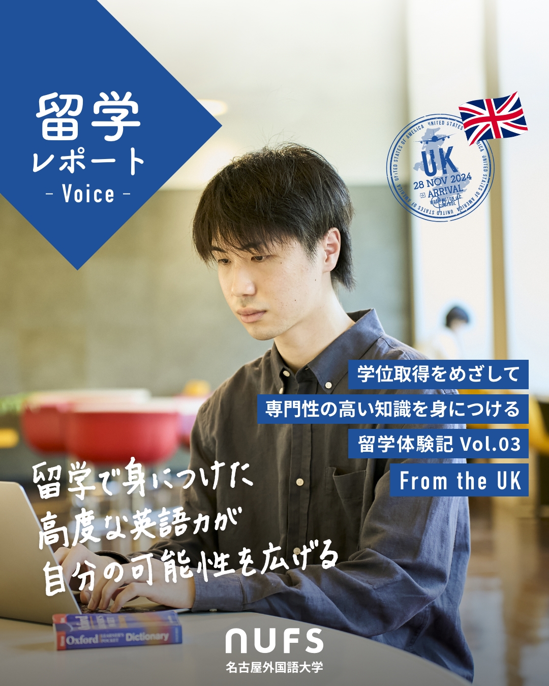 留学を通じて異なる言語の人との意思疎通をすることに夢があると感じ、将来は日本の企業と海外の企業とのコミュニケーションを担う通訳や翻訳の仕事をしたいと思っています。現在は留学で使用した資料や書籍を活用し、日々語彙力を磨いています。