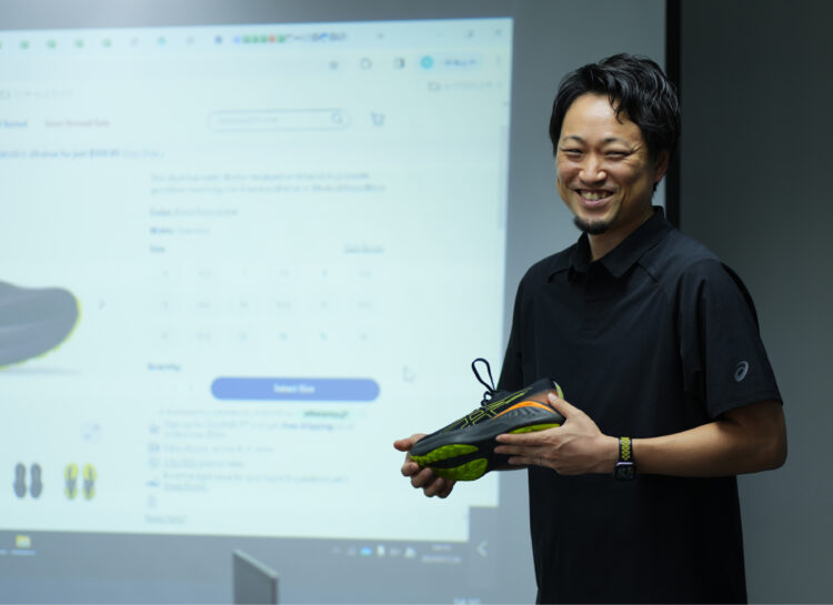 名古屋外大での学びや留学を通じて、価値観の多様さや世界の広さとともに、日本の素晴らしさにも気づき「日本の商品を世界に伝えたい」と考えるように。アシックスは日本を代表するスポーツブランドでありながら、海外の売上比率が高く、グローバルに展開している企業です。「大好きなスポーツに関わり、日本の商品を世界へ届ける」という仕事は理想そのものだと思い、入社を決意。
