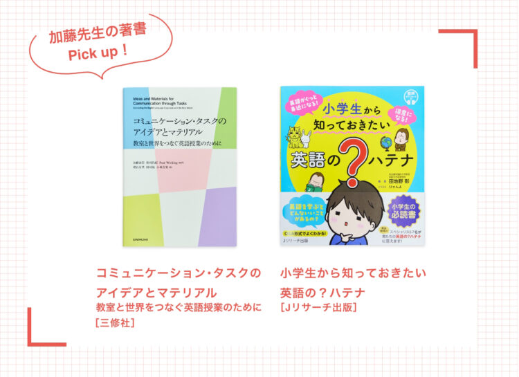 応用言語学・英語教育を専門としています。理論(研究)と実践(教育現場)のつながりに関心を持ち、自分の言語・非言語リソースを最大限に活用する「コミュニケーション・タスク」を用いた実生活に結びつく言語教育や、教師や学習者が自分の指導・学習状況を振り返り、疑問点や課題を見つけて探究していく「実践者研究」に取り組んでいます。