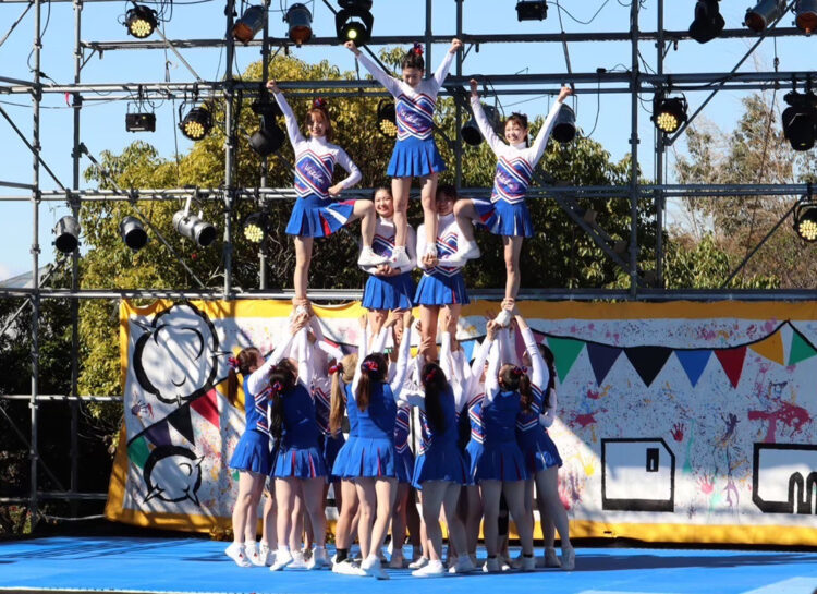 チアリーディング部は名古屋学芸大学と合同で活動しているため、友達の輪が広がります。部内は先輩後輩の垣根なく、とても仲が良いのが特長です!大学行事の他にも、地域のイベントなどへ出演しています。一生懸命に練習し、時には涙することもありますがチームみんなで全力で取り組んでいます。自分たちの演技で元気を与えることはもちろん、自分たちも元気をもらえるのがチアリーディングの魅力です!