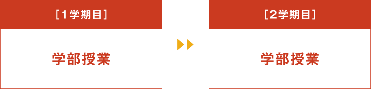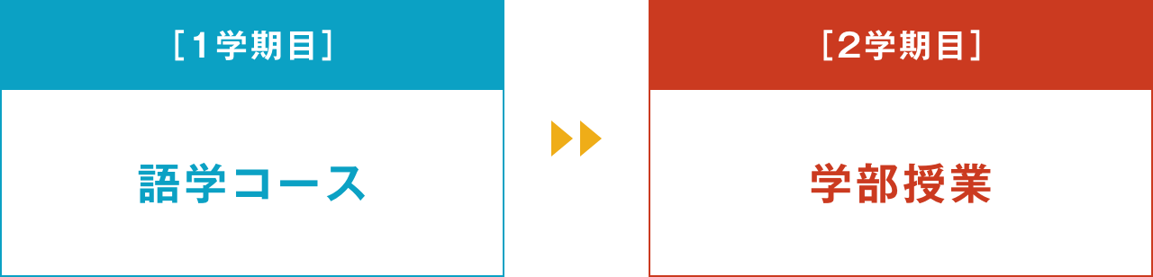 留学開始の段階では学部授業に必要な語学力に達していないという学生や、まずは語学力に自信をつけてから「学部授業」へ挑みたいという学生に向けた履修モデルです。